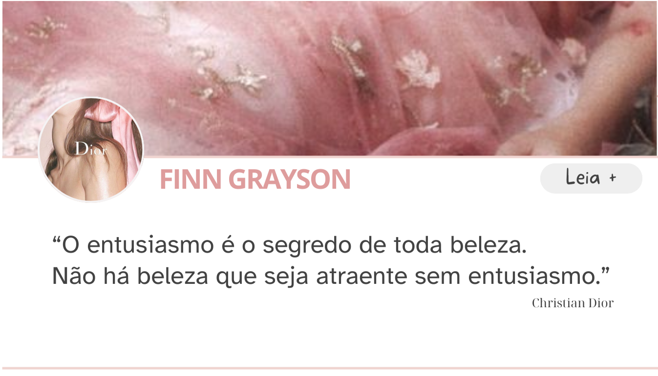 Além de sua dedicação ao balé, Grayson também estuda moda na faculdade, transformando essa área em uma de suas paixões. Seu interesse pela moda floresceu durante a adolescência, inspirado pela necessidade de se vestir de maneira adequada e refinada, uma exigência imposta por sua professora de dança. Desde então, Finn mergulhou no universo da moda, buscando aprimorar seu estilo e conhecimento na área, tornando-se um estudante comprometido e entusiasta dessa expressão artística.Seu sonho de emergir como uma bailarina renomada, desejando imensamente fazer Emelia se encher de orgulho, seu anseio é alcançar o mesmo nível de reconhecimento que sua mentora, e ela está disposta a empenhar todos os esforços possíveis para concretizar esse objetivo.Esse desejo é o motivo para sua atenção meticulosa à aparência, gestos e estilo de vida. Nesse processo, ela se vê obrigada a esconder sua verdadeira identidade, uma faceta mais profunda e intrincada de si mesma, por trás de uma fachada de perfeição.